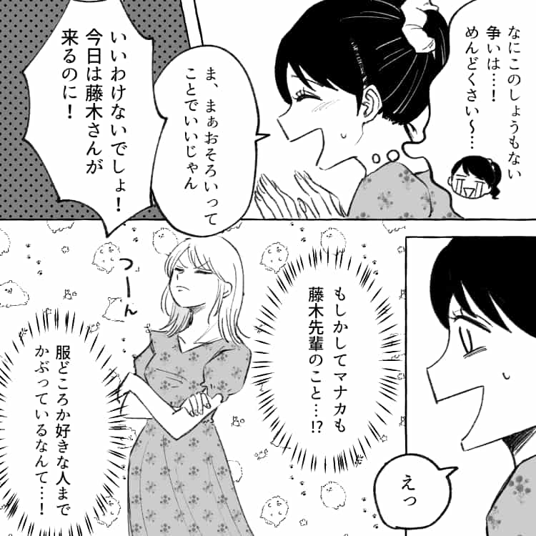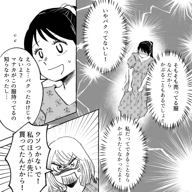 しかし、後から来た同期のマナカが、なんと偶然自分と同じ服を着ていました。