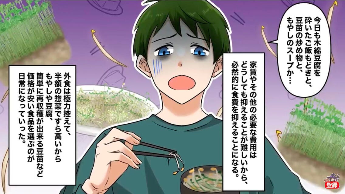 主人公は光熱費はもとより、食費を大幅に削ることにしたのです。