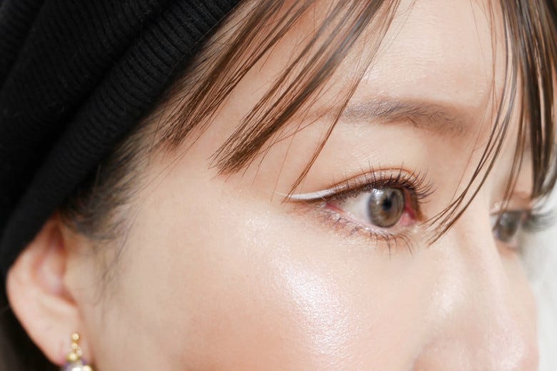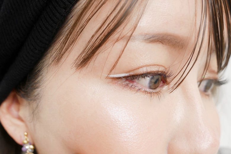 また、ホワイトのアイライナーはアイシャドウの上から重ねると筆先が汚れてしまうことも多いのですが、COCOROIKIのアイデザインライナーは1回でちょうどいい液の量が出てくるため、パウダーアイシャドウが付着するストレスもありませんでした!