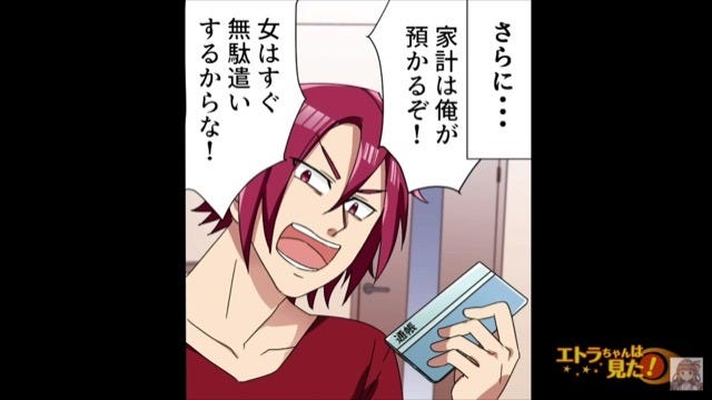 さらに「すぐ無駄遣いするから」と身勝手な理由で家計管理をすると言いだします。