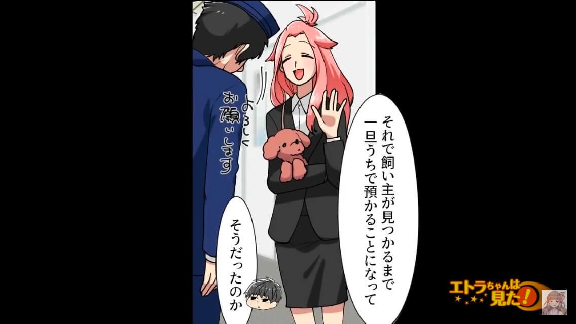 正解は「主人公が保護し、飼い主が見つかるまで一旦預かることになった犬」でした。