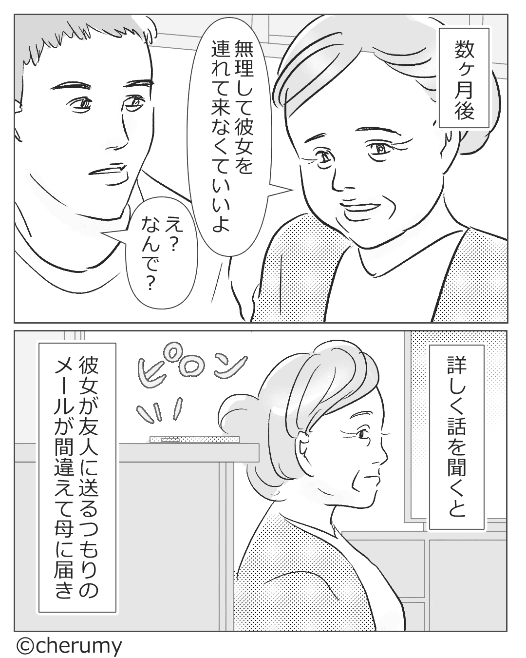 - ?彼女を両親に紹介して良好な関係だったが、数ヶ月後…⇒母『無理して連れてこなくていいよ』関係が破綻…?その【理由】に別れを決意!?