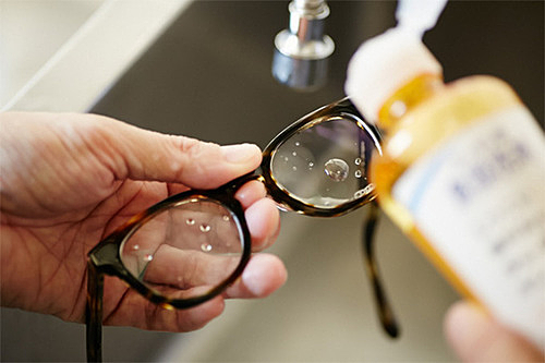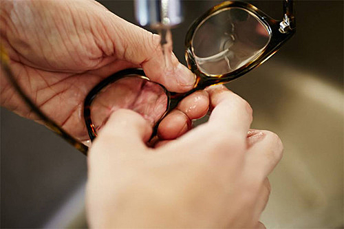 いつも外出時にはメガネをかけるという人は、家に帰ってきたらまず水洗いをして、埃や汚れをとりのぞくようにしてください。