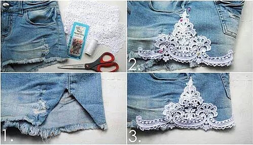 自分の好きなレースを縫い付けるだけで簡単お洒落なショーパンに大変身!