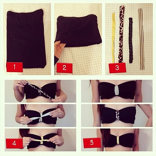 2つに折り畳んだチューブトップを着て、中央部分を好きなリボンで結ぶだけで簡単キュートなブラの出来上がり♡