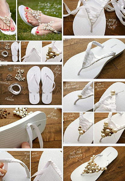 味気ないシンプルなビーチサンダルだってDIY次第でとっても可愛くなるんです!