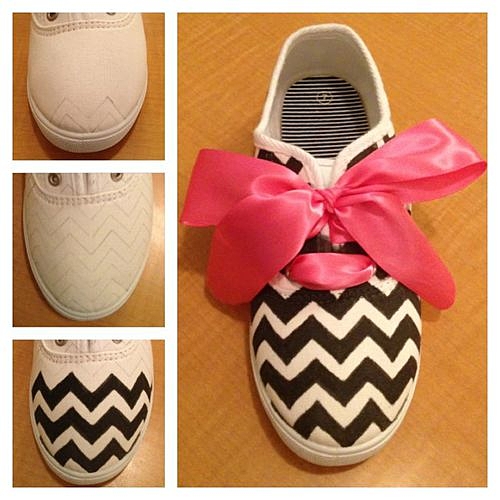 キャンバスシューズに好きな模様を描いて紐代わりにリボンを通すだけ!