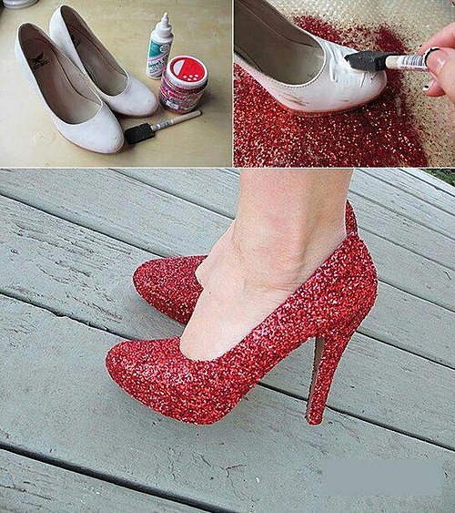 何の変哲もないホワイトパンプスがゴージャスなレッドグリッターに早変わり!