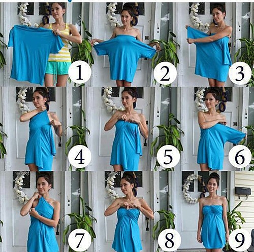 袖の部分を折り畳んで胸元に入れるだけで簡単可愛いドレスの出来上がり!