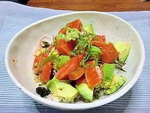 楽天レシピ:「お手軽サーモンアボカド丼 」より