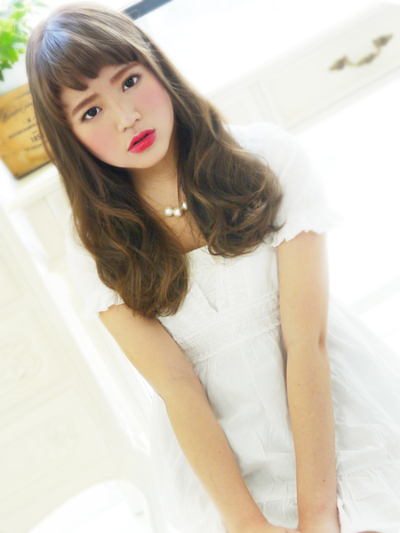 大人グラムなフェミニンロング。あどけなさを演出する厚めバングに、ほつれウェーブがほんのり色っぽ♥カジュアルにもコンサバにも似合います!