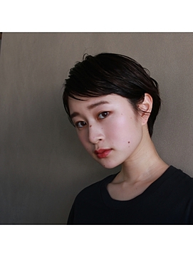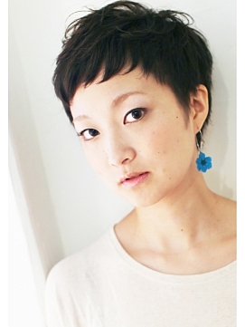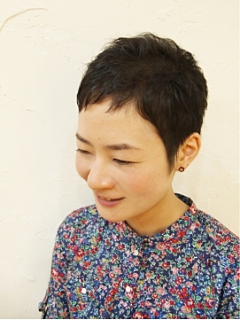 思いっきり短く切ったショートヘアをなでつけて、ウェットに。