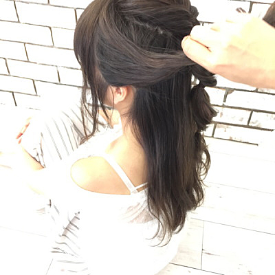 ■④サイドの髪の毛を耳の後ろでくるりんぱ