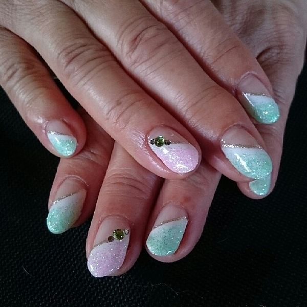 ピンク、イエロー、ブルーのパステルカラーでフレンチに・・