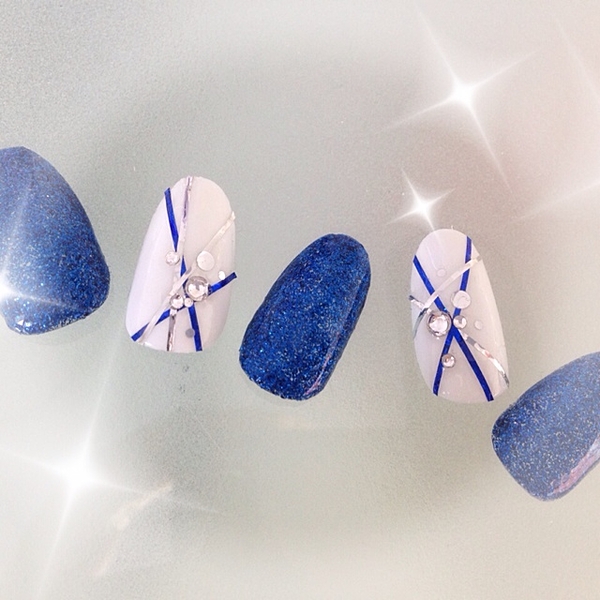 キラキララメも、極細ラインで入れると上品に仕上がります♡