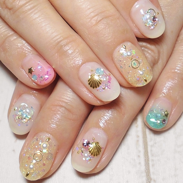 夏にぴったり♪ラメでキラキラいっぱいのモテネイル♡