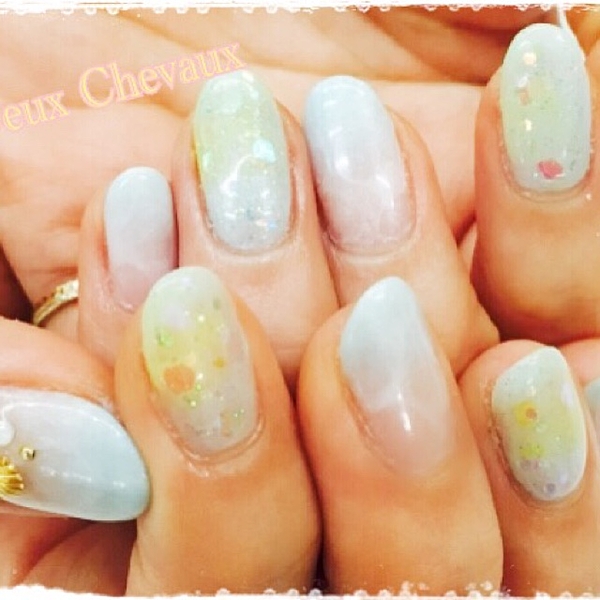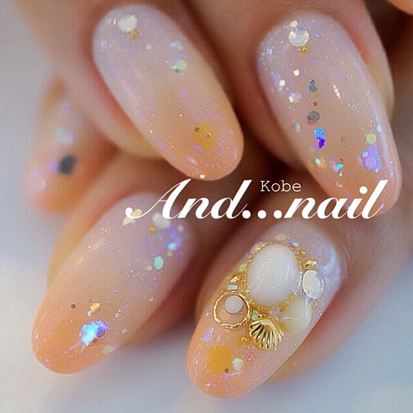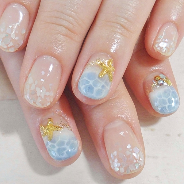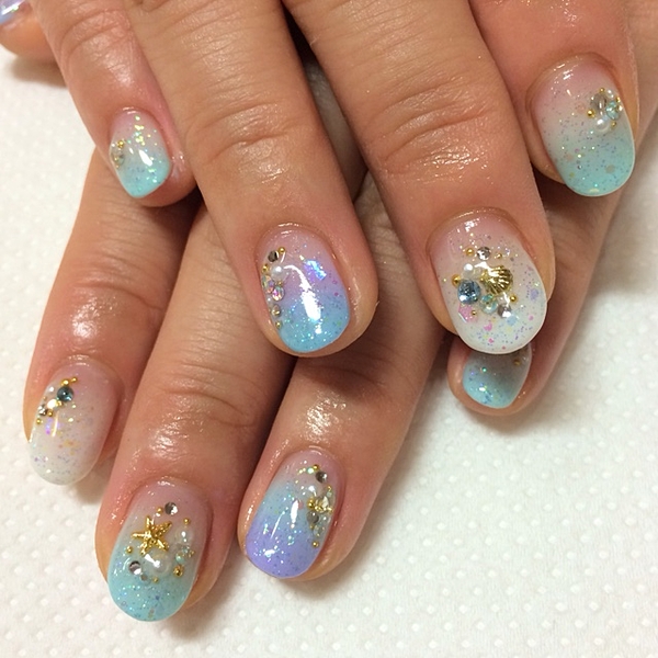 グラデーションネイルはシェルもつけて南国気分♡