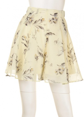 中央は大きな手書き風フラワープリントが目を引く華やかなキュロット。絵柄はちょっぴりレトロな雰囲気です!透明感のある薄手の生地が軽やかな印象を与えますね。