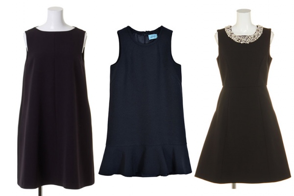 左は丸みのあるシルエットがキッチュで可愛いAラインのワンピース。シンプルなデザインなので、いつもよりちょっぴり派手めな大ぶりアクセを合わせても、おしゃれ。アクセを引き立ててくれますよ。