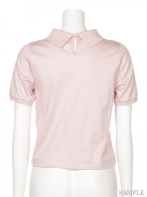 右はさりげない可愛さがいっぱいのメッシュポロニット。センターのボタンや襟、袖に入った1本のラインが愛らしいですよね。スカートにインして着るときちんと感が出ますよ。