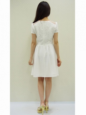 右は真っ白なフルレースが見た目にも涼しいワンピース。V字に広く開いた胸元はちょっぴりセクシーなのに清楚に見えます。小顔効果だって抜群ですよ。胸下に入った細いラインも脚長に見せてくれます。