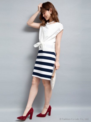 赤やイエロー等の小物を合わせて流行のマリンスタイルを完成させましょう。