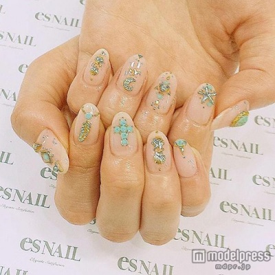 ◆人気のターコイズ夏に人気のターコイズのスタッズ。全体的に施せば、涼しさが漂ってきますね。
