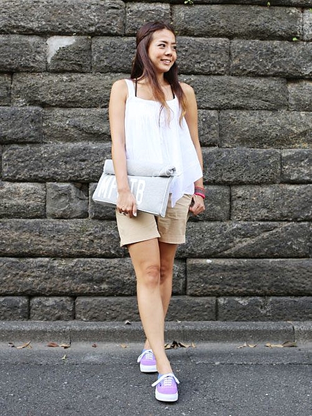 シンプルなショートパンツは1着は持っていたいですね。万能カラーの白色でコーデの幅も広がります。