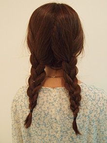 髪を2つに分けて三つ編みします。