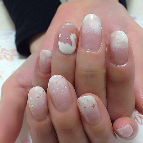 繊細で可愛らしいイチオシのスワンネイルです♡