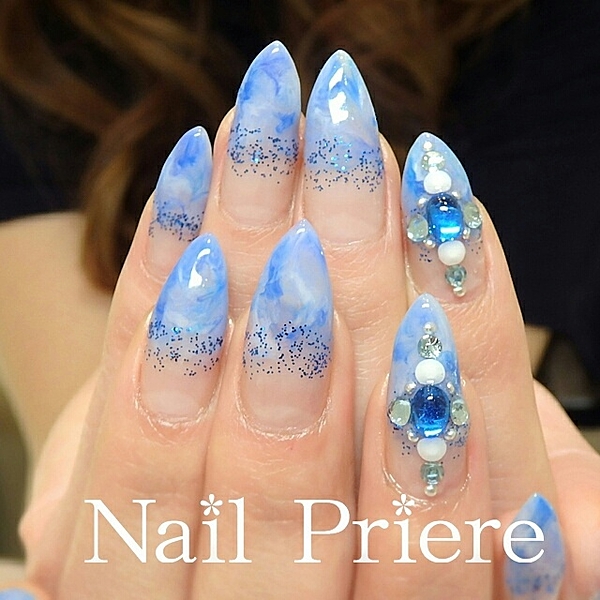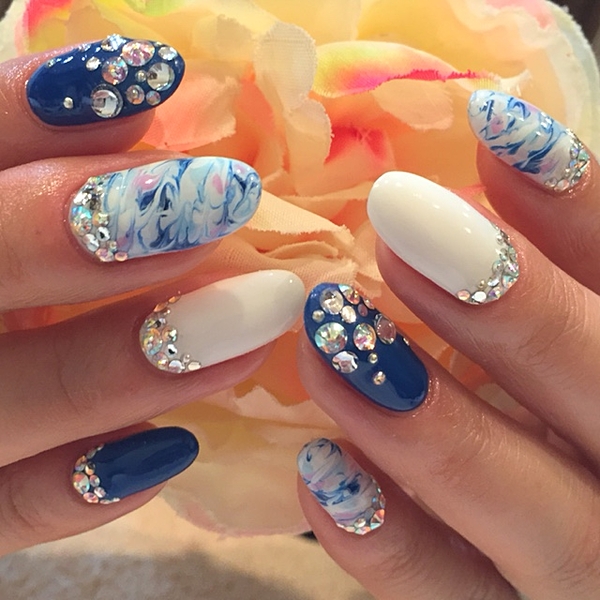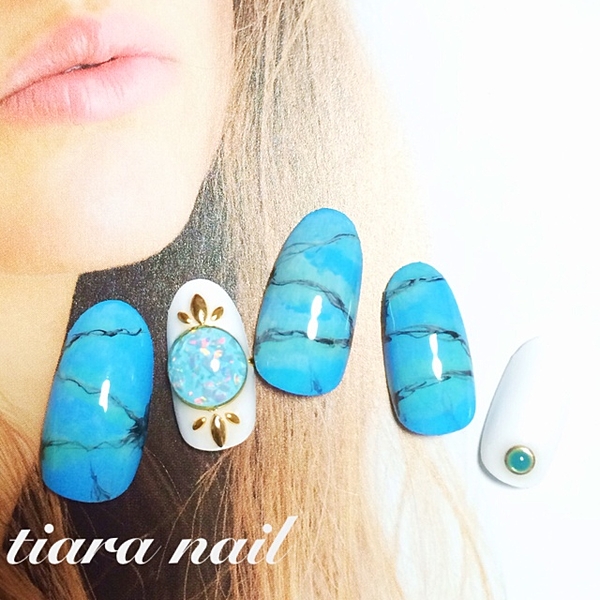 夏って言えば・・・こんなお色はマッチング!!w ブルー マーブル ネイルだよ♡ http://t.co/1oi2pZwxzK