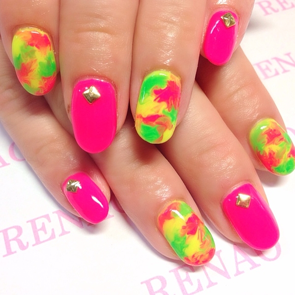 夏らしさ満点!カラフルなマーブルネイルでひと味ちがう指先に♡