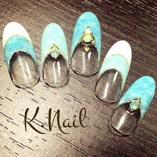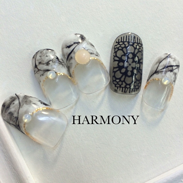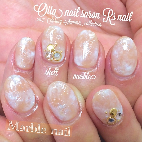 天然石風ネイルをクリアに仕上げると不思議な印象になるんですね。