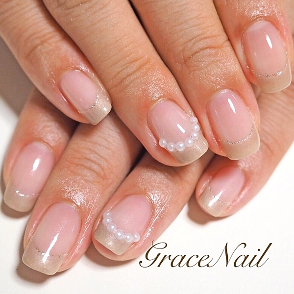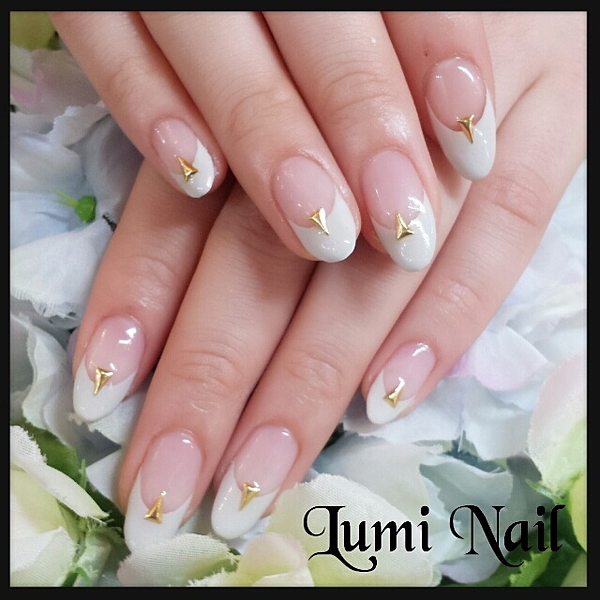 フレンチラインにてんてんと沿わせたり、3つずつまとめてドットにしたり・・おしゃれですね♡