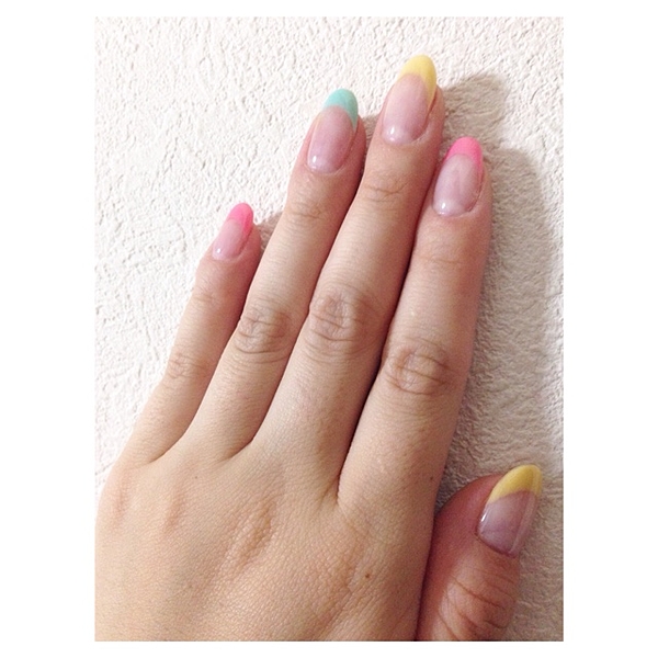 ピンクとグリーンのシャーベットカラーがかわいいフレンチネイル