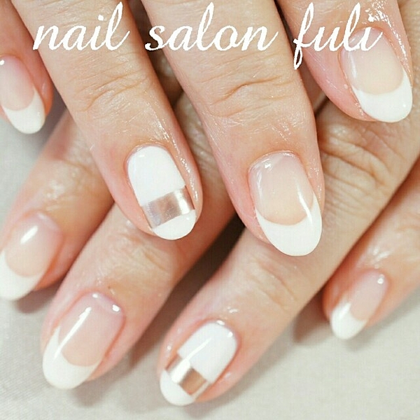 メタリックカラーのフレンチは、デザインがシンプルでも存在感があります♪