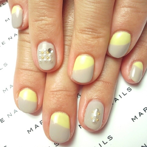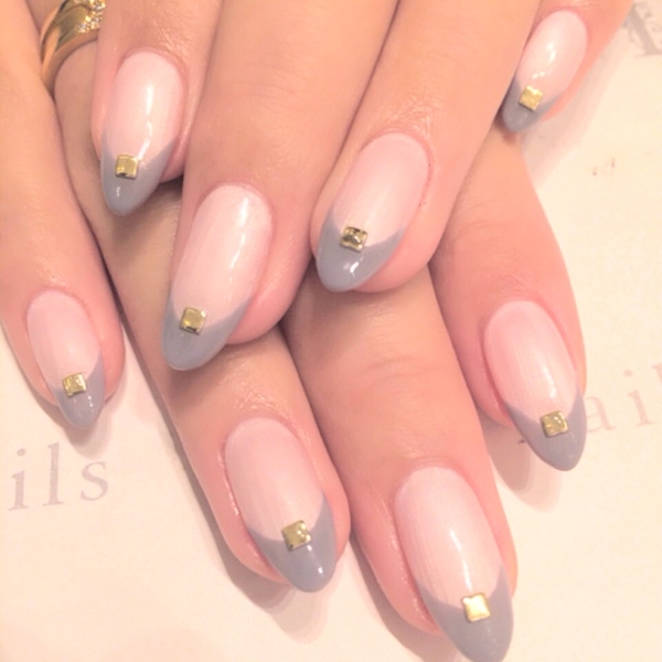 浅めの細いフレンチが新鮮♪パステルなブルーグレーとスタッズ使いが素敵ネイル☆☆ http://t.co/jwmDTAIbxo