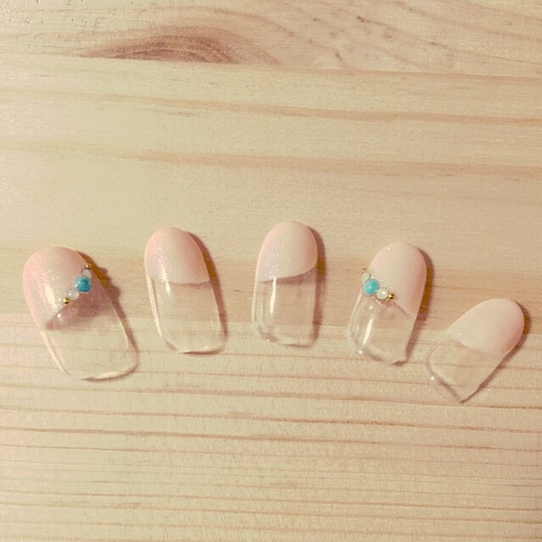 タイダイにストーンを並べて逆フレンチ風もきれいですね♡