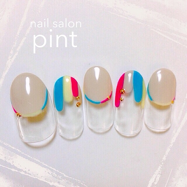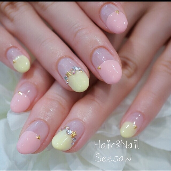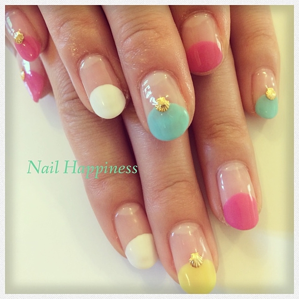 パステルイエロー、グリーンの丸フレンチ。白いドットがかわいい♪ http://t.co/sf4RwfgTzg #Nailbook http://t.co/7VaRa8MMsJ