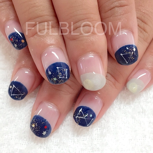 丸フレンチっぽく。スタンピングしようと思ったけどない方がいいと気づき1本でやめた(笑)爪が黄変してきているな… http://t.co/MVNo6rABP0