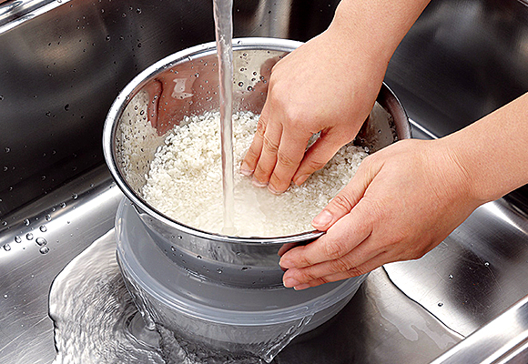 ①いつも通り、お米を洗い炊飯器にセット