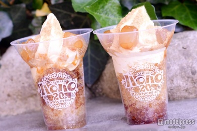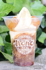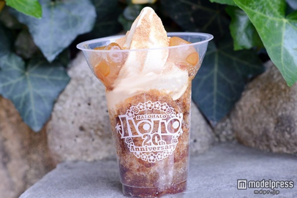 ハロハロとはタガログ語で「混ぜこぜ」という意味で、いろんな甘いものとかき氷を混ぜながらパフェ感覚で楽しむスイーツのこと。記念すべき20周年となる今年の新作「黒蜜きなこ」をさっそく注文してみると…ソフトクリ-ムの上には、たっぷりときなこがかけられており、香ばしい香りがふんわりとします。その周りに1口サイズのわらび餅がトッピングされ、コロンとしたキュートな見た目でぷるぷる。カップの底までぎっしりと詰められたカキ氷は黒蜜シロップがたっぷりとかけられており、キレイなグラデーションに。思わず「食べたい!」と一気にそそられてしまいます。