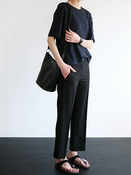 ぺたんこのサンダルやスニーカーで合わせるのがポイント