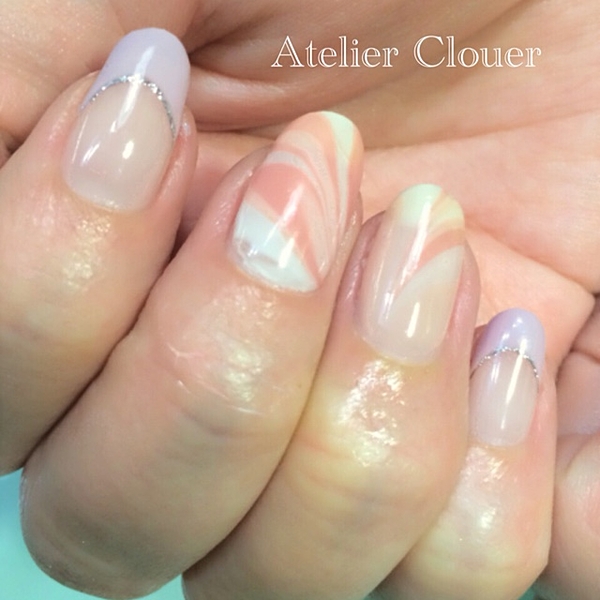 指先にカラフルだけど控えめトーンのマーブルを。