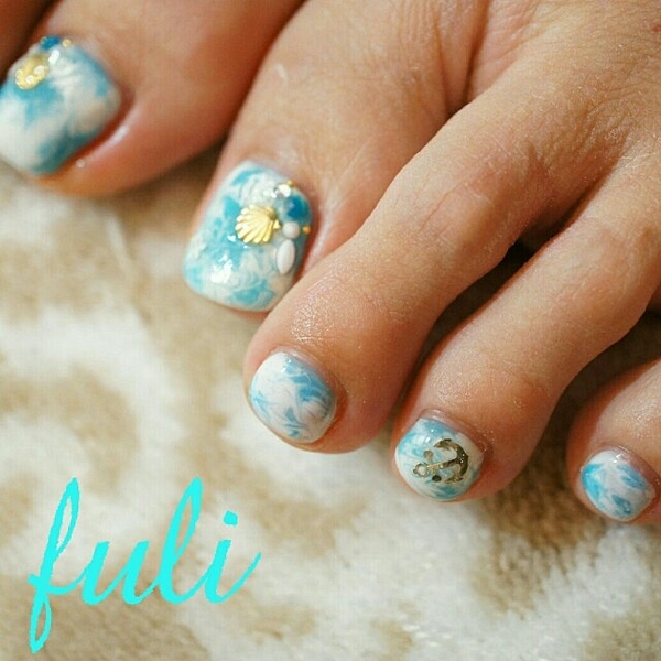 フットネイルに気合いをいれたいビーチサイドネイル。