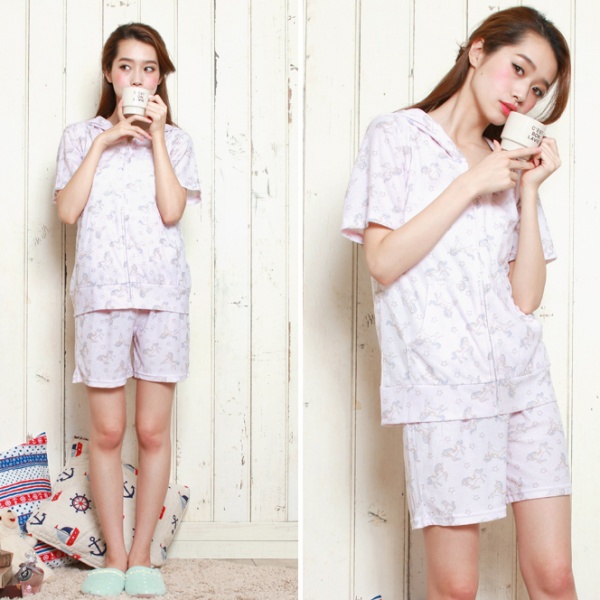 柔らかい色合いに癒やされるパーカーとショーパンの組み合わせ。選べる3パターンのデザインはどれも優しくキュートな印象になっています。