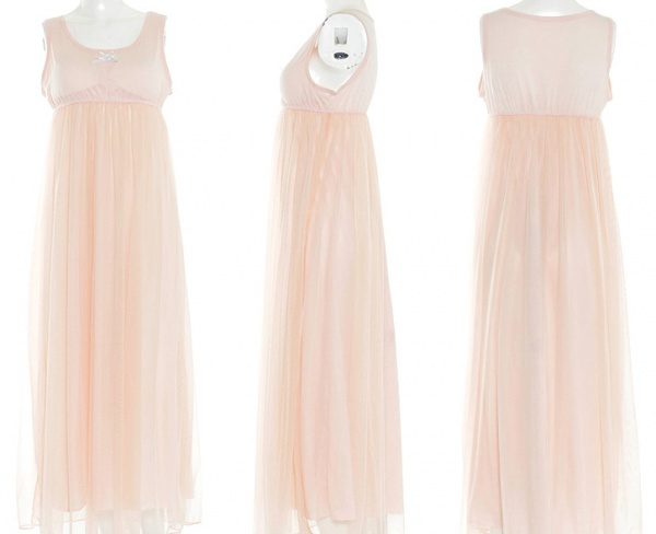 チュールをたっぷりと使い、エアリー感あふれるマキシワンピース。ふんわりシルエットがガーリーかつ、体型カバーにもなりますね。