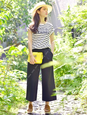 前結びのリボンが目を引くショート丈ロゴT。細身のデザインなので、すっきりと着こなせますね。ビビットなカラーは柄パンツと合わせたり、サロペの下に着用したりしても目立ちます。