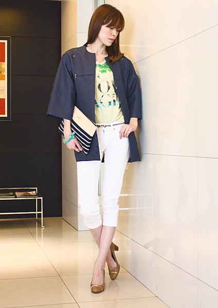 フレアトップスやノースリーブと合わせてフェミニンに。