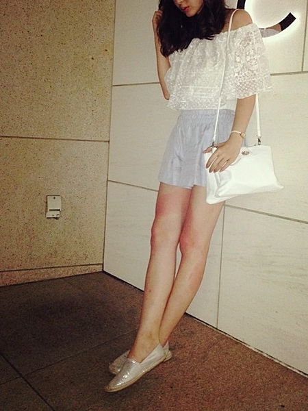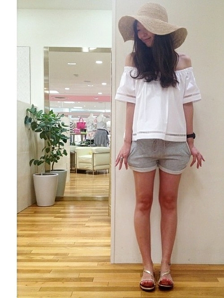オフショル × ショートパンツ